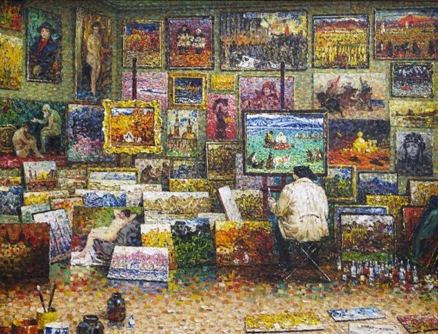 Есть ещё нюанс различия в подходах к искусству. У меня он – от физики в школе. Нас ей учили резко лучше, чем литературу. А я умел рисовать, и мне было обидно. Мне хотелось, чтоб и об искусстве говорилось так же ответственно, как о физике. А я видел издевательство по отношению к такому желанию. Что хочу, то и ворочу. А у мадам, похоже, отношение тоже связано с точной наукой, математикой. Она её утомляет на работе своей ответственностью за каждое слово. Вот об искусстве – можно сказать, что угодно. "…несмотря на то, что на "Автопортрете", написанном в 2000-м году, Шебеко тоже фактически не показывает свой облик, эта картина многое рассказывает о нём”. Что же? – Наверно, то, о чём в первых строках: "…работал практически без выходных, каждый день ставил перед собой задачу-минимум, которую стремился выполнить. Поэтому оставленное художником творческое наследие довольно обширно”. В самом деле, в “Автопортрете” море картин. Больше 60-ти. Но это ж по-детски – так выразить своё трудолюбие. Тогда сложнее: "На картине мы можем увидеть его работы "в миниатюре", понять, что их тематика довольно обширна”. И обрыв мысли. Общий позитив тона говорит читателю, что обширность тематики это достоинство. Ну принято ж персонажей статей о художниках хвалить. Вот и выдан безответственный намёк, что обширность тематики это хорошо. – Математика отдыхает. Или заявление: "Кирилл Иванович Шебеко творчески переосмыслил технику и творческие находки французских неоимпрессионистов и создал свой стиль, неопуантилизм”. Техническое открытие! А больше ни слова. Мне особенно обидно, потому что источником мотивации статьи мадам была моя статья, где я ссылался на теоретические выкладки Флоренского об оцепенелости впечатления от пуантилизма и где мне удалось обосновать, как преодолел Шебеко эту оцепенелость в иных вещах. И вот, "Будучи категорически не согласной с подачей и выводами” моими, ЧТО она предлагает взамен? – Пустоту слова “неопуантилизм” (про который я сомневаюсь, что есть такое определение). Зато лёгкость в мыслях необыкновенная. Ну да. Надо ж людей оболванивать. 4 июля 2022 г.