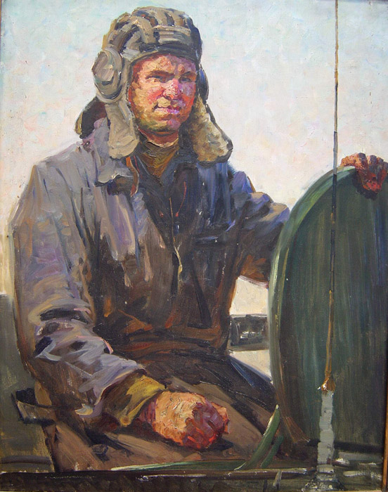 Шебеко. Этюд-портрет из Даманской серии. "Оба мастера [в войну танкист Шебеко и старшина на торпедном катере Рыбачук] не писали картин о войне. Но когда в 1969-м на Даманском загремели выстрелы, фронтовики выехали на поле боя. По горячим следам событий в этюдах и рисунках они создали своеобразный и правдивый фронтовой репортаж о защитниках рубежей нашей Родины. Его увидели зрители Владивостока в Доме художника. Сама выставка вызвала широкий общественный резонанс” (https://novayagazeta-vlad.ru/282/kultura/yunost-opalennaya-vojnoj.html). Я вспоминаю тот гнев, что колотил меня от событий на Даманском, и мне очень внятно, что говорят грубые мазки на этом этюде. И приглаживать в картине не надо. Я на днях общался с таким воякой. Электронно. Как в очном разговоре чувствовался его напор, не знающий иного направления, чем вперёд. Шебеко зажёгся таким настроением и нарисовал себя времени войны, хоть лицо оставил портретируемого. А больше не случалось Даманских, и он больше такую браваду не рисовал. Ну, да, это можно назвать передёргом. На “Автопортрете” танкист другой, повёрнут от нас влево, а на эскизе – вправо. И, строго говоря, нельзя судить о настроении портрета танкиста в “Автопортрете”. Вообще почти ни одной картины с “Автопортрета” невозможно найти в интернете, кроме двух, что в центре вверху: “Детям Чукотки” (1967) и “Капитуляция Германии” (1950). Шебеко как бы предвидел мои экзерсисы, способные доказать, что единства определённого выражения у него нету. Кроме дальневосточной темы. Её точно можно выявить по “Автопортрету”.