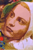 Ну да, у Примаченко это не Искусство с большой буквы. Оно не выражает глубоких идей. У неё √ прикладное искусство. Приложено оно к ней, больной. Оно предназначено компенсировать ей её лишенство. Оно, как любовная или колыбельная песни, может применяться и для облегчения участи и других несчастных. Будут смотреть на эти нарисованные сны наяву, и станет им легче. Да и здоровые могут дать себе волю. У всех же есть свои скелеты в шкафу. Ну да, прав Савадов, издеваясь с высоты своего постмодернизма. Это таки идея √ что нет сто`ящих идей. Не он, правда, первый до такого додумался. Но для Искусства с большой буквы и не первенство важно. А важна большая неожиданность. И она достигнута: позволить себе насмехаться над ТАКОЙ убогой, как Примаченко!.. √ Это надо ж додуматься (до того, как разрешить себе). А ведь ещё и разрешил же. Картина входит в цикл (или как это называется?) ⌠От первого лица■, демонстрировавшаяся в 2011 году. А в 2009-м отмечали столетие со дня рождения Примаченко. Савадова, возможно, задела такая слава. И он решил посмеяться над славящими. Украинским националистам же льстит любая слава страны, только-только впервые обретшей государственность. Нахватились и на Примаченко, которая ⌠досягла свЁтового визнання■ в качестве художника-примитивиста наряду ⌠з АнрЁ Руссо, НЁко ПЁросманЁшвЁлЁ■. Ну так нате вам: я её вам нарисую в виде Золушки Шарля Перро:
