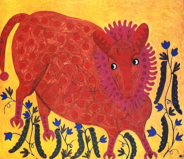 http://www.ukrkolo.com/prymachenko/mpwg42.htm Примаченко. Гороховый зверь. 1977. И вот Савадов, - ожидаю, что издевки ради (нет же святого! Нет сочувствия к больной женщине, к способу её спасения проживания страшной для неё жизни), - помещает этого горохового зверя у себя на картине: