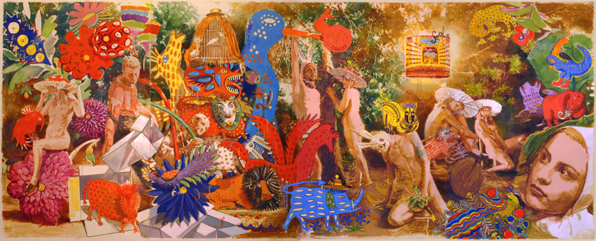 Но главное, изобразить, как играют в сны наяву вполне здоровые люди. Заметьте, не впадают в сны наяву (в них впадают несчастные). А играют. Это в то время, как нэзалэжна Украина ⌠┘заняла 73 место в глобальном рейтинге качества жизни 2011 года, проведенном изданием International Living. Рядом - Намибия, Ботсвана, Тунис, Марокко, Тринидад и Тобаго■ (http://mignews.com.ua/ru/articles/59679.html). Страна √ несчастных, а Савадов смеётся. Таков постмодернизм. Нет святого (и, наоброт, ужасного) на свете. Есть только смешное. Я редко когда натыкался на значительное произведение постмодернизма. Всё-таки, думал, безыдеалье даёт себя знать. Чем вдохновляться, если нечем? Откуда получиться произведению Искусства с большой буквы? √ Ан вот, пожалуйста: Савадов. Мало, что мне очень и очень не симпатична постмодернистская философия пофигизма. Но она же спрятана! Это ж не сатира (самый нехудожественный род искусства). Значит, эта картина √ наоборот: художественна. Играют в сны наяву┘ самые сытые, здоровые и вольные. У них рай, понимаешь (вон, и ходят голые), а они над ним смеются. Мало что над Украиной смеются. Или Савадов, всё это вполне осознавая, рисовал сие с холодным сердцем, как делают иллюстрацию заранее известного? И нет тогда тут Искусства с большой буквы. А есть околоискусство √ иллюстрация. И, как правило, не способен всё же постмодернист создать Искусство┘ Вопрос. 13 августа 2013 г.
