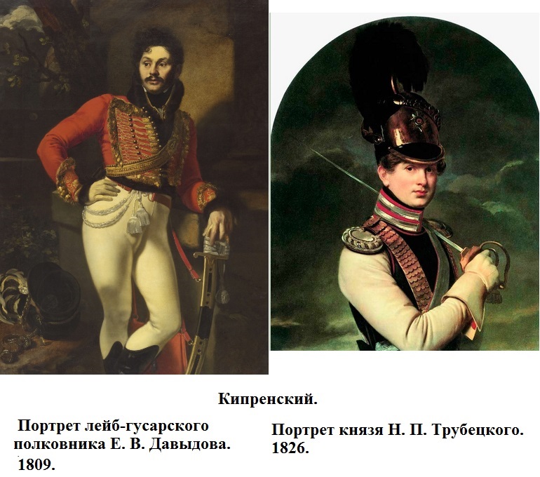"Теперь романтизм говорит, что человек в своей внутренней жизни свободен, ни из чего не выводим (даже из бога), сам себе довлеет, и есть своя собственная причина и причина всего сущего. Культ свободной личности в индивидуалистическом и анархическом сознании эпохи Французской революции поглощал объективный мир. Между тем именно культ свободной личности в ее душевной отъединенности и был одной из основ романтизма — или даже шире: романтизм признал примат частного над общим, индивидуального над общественным или общечеловеческим, конкретного над абстрактным. В этом была и его освобождающая от фикций феодального абсолютизма роль, и его прогрессивность в плане мировоззрения” (http://feb-web.ru/feb/pushkin/critics/guk/guk.htm). В самом деле. Чего эти рубаки (особенно первый) ни с того ни с сего улетели из своей обыденной обстановки мыслечувством куда-то далеко-далеко? – Оттого что ему плевать на обстановку. Причём это было новизной для патриотического и демократического окружения, в котором Кипренский вращался: "…сближает Кипренского с Вольным обществом любителей словесности, наук и художеств… Расцвет деятельности этого вольнолюбивого кружка приходится на рубеж веков, то есть именно на то время, когда и формировалось мировоззрение Кипренского. Тут изучали французских философов и английских экономистов, А. Н. Радищева (в Общество входил его сын). Большое внимание уделялось отечественной истории, и стоит вспомнить, что именно на заседаниях Вольного общества родилась идея воздвижения монумента Минину и Пожарскому, осуществить который взялся скульптор И. П. Мартос… Россия жила ожиданием будущего, которое, правда, вырисовывалось еще крайне смутно, но мысль о нем окрыляла многих. “Допожарная” столица представляла после Петербурга крупный центр духовной жизни страны. Сблизившись с кругами свободомыслящей дворянской интеллигенции, Кипренский все больше вглядывался в свою эпоху, стараясь понять ее… Здесь вели споры вокруг захватнической политики Наполеона, Тильзитский мир не воспринимался прочным, говорилось о том, что только Россия сможет противостоять коварным замыслам французского императора. 1808 и 1809 годы отмечены успешными действиями русской армии в Швеции, Австрии и на Балканском полуострове. Зрели патриотические настроения, давалась резкая отповедь галломании, утверждалась идея национальной независимости” (Турчин. Орест Кипренский. М., 1982). То есть грусть Давыдова – странность для окружения художника. Что и означает, что его подсознательный идеал (индивидуалистский) отличается от осознаваемого (коллективистского, характерного для так называемого гражданского романтизма). . А при всём том я считаю себя патриотом. Почему? Потому что ментально Россия лучше всех приспособлена для коммунизма, в котором люди, оставив работу роботам и искусственному интеллекту, будут жить искусством, неприкладным, когда общаются подсознаниями, сверхтонкостью. Все – аристократы. Так, чтоб к этому готовиться уже сейчас, надо учиться открывать подсознательные идеалы художников, какими бы идеалы ни оказывались. И я этому способствую. Будущей России. 29 июля 2022 г.