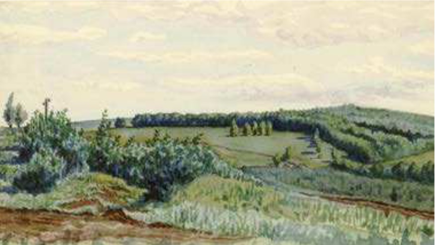 а просто неудачно обозначенная трава. Затем оттенок зелени одинаков (холодный) у травы первого плана слева и кустов второго плана справа. Впрочем, почти вся зелень на картине такого оттенка. Может, за то и обращает на себя внимание: противоречие холодного тона на земле тёплому тону на небе. И как-то воздушная перспектива не выражена (одинакового тона зелень третьего плана в центре и дальнего плана справа). И опять впрочем, не за то ли останавливает внимание? То же самое можно сказать о бурой земле слева вблизи и справа чуть подальше: одинаковыми красками написано. Зато небо – прелесть. В других его вещах я ни к чему придраться не могу, но они не останавливают моего внимания. 2 августа 2022 г.