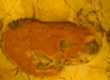 В пещере Альтамира. Именно его. С совершенно неповторимым профилем (из-за неповторимости именно впрофиль и рисовали), с только его лбом, носом, ушами, глазами, позой и расцветкой. "То" и "не то". Только "то" нельзя трогать. Оно вскочит и убежит. Ибо нельзя нарушать сложившиеся взаимоотношения видов. А "не то" не только можно потрогать, но оно и сделано всё запрещёнными там, в жизни, троганиями. Какое-то чувство власти, наверно, испытывал художник. И это облегчало голод. И потому он звал других сюда. Они тоже ж знают именно это животное, которое художник подкараулил спящим. И все почувствуют как бы власть над ним. И всем станет чуточку легче с голодом. Нельзя хотеть его, живого и здорового, скушать. Но можно √ его, нарисованного. Нельзя вообще-то и хотеть. Так зато это и нарисовано в самом далёком и тёмном месте пещеры. Рисунка как бы и нет на белом свете. То, что нельзя вообще-то┘ как-то даже и можно. Всё как-то легче жить. Вот, что значит нарываться именно на то, что у обычных животных вызывает стресс и невроз. Надо только, чтоб это был именно точный портрет. Точнейший. Чтоб было "то" и "не то". Чтоб было противоречие. Так с самого начала √ и навсегда √ творило Искусство с большой буквы только ему одному и присущую функцию непосредственного и непринуждённого испытания сокровенного мироотношения человека с целью совершенствования человечества. Эти (и другие) МЫ понятия, конечно, не имели, что целью их совершенствования на данном этапе было разрешить себе охоту, то, на что их натравливали ОНИ, нелюди. И как только они себе охоту, наконец, разрешили, так √ как обрезало √ у них исчезала пещерная живопись, конкретно - до иллюзорности натуралистичная и с объектом изображения - абы какого животного глаза художника увидели, пусть и хищника. Теперь почему сокровенное мироотношение? Инстинкт "не убий" был общий у всех падальщиков. Он входил в их МЫ и тогда, когда они отделились от ОНИ, от нелюдей, подбивавших было их убивать. А вот акт рисования был направлен против МЫ. Он был как бы проявлением Я. Я пряталось от МЫ в пещере. Я было сокровенным. Оно было "грехом" и вот подвергалось испытанию: а вдруг трогать-убивать животных √ хорошо? √ Оказывалось, что нет, пока - плохо. Но - только пока┘ Пока не совершилось действо: РАЗРЕШЕНИЕ убивать. В чём непринуждённость? √ Кто не хотел - не шёл в тот дальний конец пещеры смотреть "грех". А ещё - в условности всё же изображения. Это было "не то", не жизнь, принуждающая. А в чём непосредственность? √ В личном знакомстве каждого зрителя с тем животным в действительности, в портретном сходстве, в узнавании. В другое время, при жизни других людей и других животных, то, что было нарисовано раньше, не имело никакой ценности. Поэтому новый художник совершенно не обращал внимания на уже нарисованное и мог рисовать новое поверх старого, не соотносясь с ним. ТАК было ТОГДА. 28 августа 2013 г.
