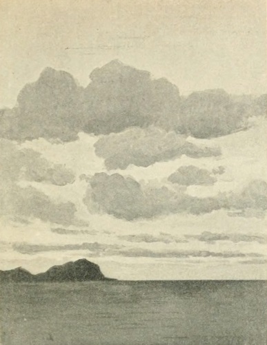 К тому же тут смысл брезжит. Все стихии существуют тут как бы отдельно друг от друга. Море светлое небо не отражает. Облака – тоже. И они сами, каждое, какие-то отдельные друг от друга. Тёмную скалу море тоже не отражает. В самом небе изменения тона нет, например, большего света на горизонте, ибо там недавно село солнце. Это даже тоже есть странность. Небо как бы не живёт, тогда как вечером оно ж наиболее изменчивое за день. Всё настолько медленно меркнет, что само время как бы остановилось. А это – образ метафизического иномирия, где другая физика. Нет времени – нет и смерти…* – Всё тот же, знакомый, подсознательный идеал ницшеанства.