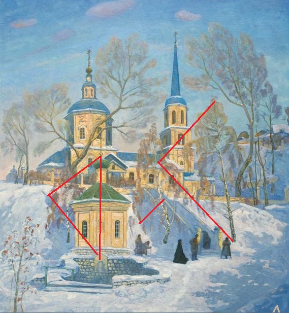 Уф! Хоть храм он с натуры рисовал… Но дурастый он всё же художник. Как и автор статьи о нём. – А что было б не дурастым, у художника? – Если б от смотрения на его картину зритель чувствовал ЧТО-ТО, словами невыразимое. И чтоб описывающий картины художника автор не гнушался б им давать отрицательную характеристику за то, что этого ЧЕГО-ТО, словами невыразимого, не ощущается. – А разве странности, от отсутствия лица до всего, что заметили вы, не есть указатель на это ЧТО-ТО? – Не есть. Потому что они говорят об одном и том же – о неосновательности Ишкова. – В чём неосновательность для отсутствия лица? – В буквальном следовании требованию стилизации под декоративность. Всё должно, мол, быть одинаково глыбисто. У человека просто недостаток таланта художника. Умом действительно невозможно всё предусмотреть. Так спасает талант. Он в том, что включается подсознание и организовывает единство во всех деталях. А один-единственный ум то и дело не замечает что-то. Какого-то таланта лишён и популяризатор Ишкова, раз не заметил всех перечисленных ляпов. Чего-то, увы, лишены и тысячи людей, подписавшихся на его канал. 26 октября 2022 г.