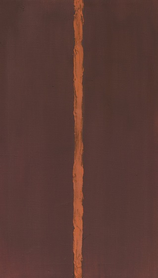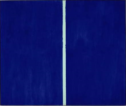 Ньюман. Onement I. (Согласие I). 1948. 69,2 х 41,2 см. Казалось бы, получилось произведение прикладного искусства, иллюстрируется нечто кабаллистическое. Я дал словарный перевод английского названия картины. А на самом деле она "…называлась “Onement I”, что означает “единое” в смысле Абсолюта. Разделение поверхности картины вертикальной полосой надвое говорит о первом акте творения, и исследователи творчества Ньюмана уже обратили внимание на то, что в похожих терминах первоначальные этапы творения описаны в лурианской каббале” (Там же). Можно даже сказать, что это иллюстрация такой степени, что выводит её за пределы искусства как экстраординарности. Какая, к чёрту, экстраординарность, когда просто слова переведены в изображение. И всё переворачивается, если это самообманная маскировка отчаяния, ибо появилось нечто "внушающее ужас [не атомная угроза, а хуже – что-то метафизическое, как Чёрт], по сравнению с чем удовольствие от “прекрасного” стало неактуальным и старомодным” (Там же). Осталось только тёмное удовольствие от того, что удалось выразить это иномирие. Непосредственное и бездумное впечатление, согласитесь, нехорошее ЧТО-ТО. Хоть оно и тёплого оттенка. Власти США (и ЦРУ даже) и обслуживающие их критики талантливо воспользовались ограничениями в СССР на формализм и благосклонность к реализму и представили такой абстракционизм выразителем свободы. "Границы тонов на них на самом деле ничего не разделяют, а провозглашают один из главных американских принципов — свободу. Американский арт-критик Клемент Гринберг писал: “Границы больших полотен Ньюмана играют ту же роль, что и внутренние линии форм. Они делят, но ничего не разделяют, не замыкают и не изолируют. Они устанавливают границы, но ничего не ограничивают”” (https://artifex.ru/%D0%B6%D0%B8%D0%B2%D0%BE%D0%BF%D0%B8%D1%81%D1%8C/%D0%B1%D0%B0%D1%80%D0%BD%D0%B5%D1%82%D1%82-%D0%BD%D1%8C%D1%8E%D0%BC%D0%B0%D0%BD/). Правда, он свою картину 1948 года никому не показал. И я не знаю, как там было между Гринбергом и Ньюманом, но написал Гринберг явно не про нехорошее ЧТО-ТО. А Ньюман последующие картины “с застёжками” сделал яркими и огромными.