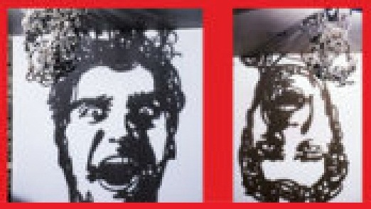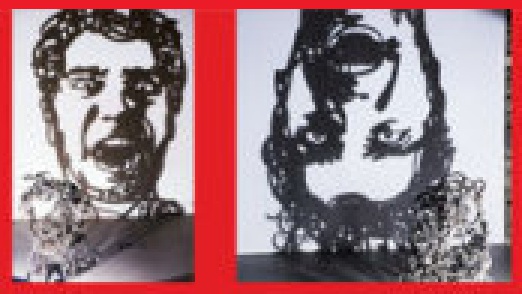 Внизу изображения то, что освещается. Какая-то путаница стружек или не знаю, чего. Художник сказал, что изображено лицо летящего человека и лицо падающего человека и что они одинаковые┘ Я перевернул.