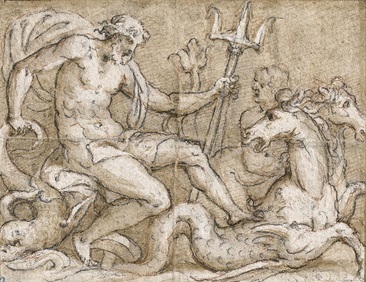 Кампи. Нептун на своей колеснице, запряженной гиппокампами. Смотрите, как изогнуты тела Нептуна, этих гиппокампов, какой-то рыбы… Какие утрированные у Нептуна мышцы.