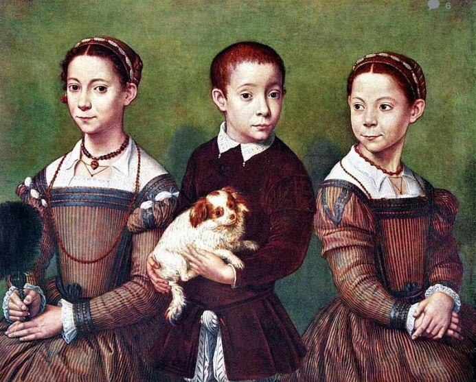 Ангуиссола. Трое детей с собачкой. Зачем же художница убрала с груди своего изображения защищающую руку? – А чтоб не нарываться на лишние неприятности. Чудо уже то, что ей, женщине, разрешили быть художницей. 30 января 2023 г.