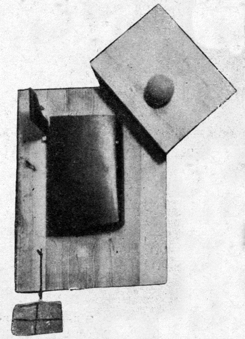Розанова. Рельеф “Автомобиль”. 1915 г. Дерево, стекло, кирпич, веревка, мяч. Имеется в виду, что с велосипеда можно упасть и на автомобиле можно в аварию попасть, если на дороге окажется препятствие какое-нибудь. И этого не было бы, если б велосипедов и автомобилей не было б изобретено. Текст, на который я наткнулся: "…важный момент, связанный с особенностями живописных скульптур: диссонанс двух элементов — зрительного ряда и названия, соединенных друг с другом ускользающей, неочевидной, субъективной цепочкой ассоциаций. Аналогичным образом были построены живописные рельефы Розановой “Велосипедист (Чертова панель)” и “Автомобиль”, показанные на выставке “0,10” в 1915 году. Подбор материалов и композиция давали импульс для игры свободных ассоциаций на тему случайных помех движению или падения велосипедиста. Сами же материалы и построение композиции никак не могли считаться прямыми эквивалентами или символическими обозначениями каких-либо определенных предметов и ситуаций” (Бобринская. Русский авангард. Границы искусства). В чём мой вклад? – В том, что я вижу в стандартных для футуристов образах Прогресса, называемых словами “Велосипедист” и “Автомобиль”, образ зреющей социальной революции, которая – уже видно – пойдёт не так, как надо. Отчего подсознательное как бы закусывание губы до боли при хвале Прогрессу-революции: страшное корёжение натуроподобия. ПОДСОЗНАТЕЛЬНОЕ. При подсознательном идеале коммунизма, как рая на земле. Что такого плохого, произошло с социал-демократией в 1915 году? – Циммервальдская конференция. "Циммервальдская левая — международная группа революционных социалистов в 1915—1919, выступавшая за “превращение империалистической войны в войну гражданскую” и организационный разрыв с большинством II Интернационала” (Википедия). Во как! – А? – Зубовный скрежет должен издать приверженец формализма. 29 июля 2023 г.