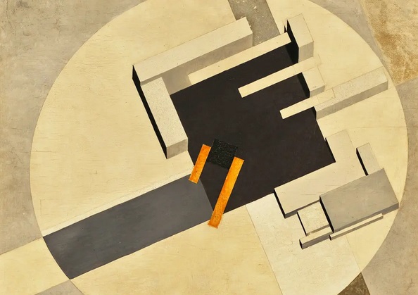 Вот Лисицкий в связи с победами самой Октябрьской революции и с победами во вскоре после неё начавшейся гражданской войне (он жил в Витебске, а туда война вообще не дошла) решил этому оптимизму подыграть, почувствовав, что Малевич (обретающийся в Витебске же) какой-то всененавистник со своим супрематизмом, и стал Лисицкий, казалось бы, просто в пику приделывать плоским геометрическим фигурам малевичским объём.