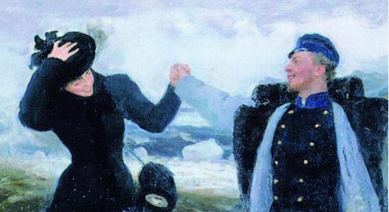 Какой простор! 1903. Что мы видим? √ Невероятное ж. Зима. Обледенелая, скользкая набережная. И безумие √ стоять на ней не то, что в такой близи к краю┘ Вообще не видно и непонятно, на чём стоят студент и курсистка. Репин увидел, что революция-то, да, будет, но оснований для её победы нету. Победить могут только глубоко убеждённые люди, а не легкомысленные,