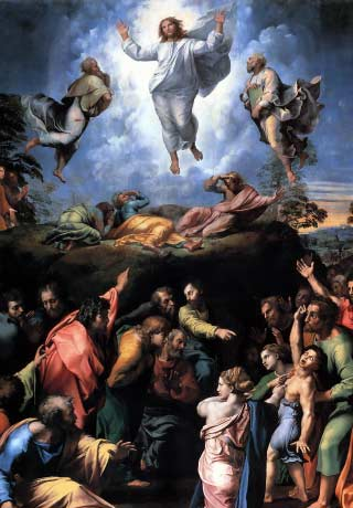 Рафаэль во гневе. Где-то я читал хлёсткие слова о Ветхом Завете, что это роман Бога с его избранным народом, таким жесковыйным, что никак Он его не может и не может ввести в стойкую веру в Себя. Так мне кажется, что Матфей, - когда писал о Преображении и после него, - испытывал (от имени Христа, вживаясь в его переживания) такую же минутную ненависть к народу, какая промелькивает у Яхве к избранному. Ведь было что? Иоанн Креститель объявил, что приблизилось Царство Небесное и покаяться надо, а люди что? А люди, как ни в чём не бывало, просят Христа об исцелении себя или ребёнка своего. И Христос исцелял. И надоело. Не о том думают. Ну как было не разгневаться Христу и Матфею вслед за ним, когда Его описывал. И спустившись с холма, где было Преображение (где открыл ученикам там Бог, что Христос Его Сын), опять та же история √ просят исцелить. Ясно, что Христос разгневался: ⌠┘о, род неверный и развращенный! доколе буду с вами? доколе буду терпеть вас?..■ (Мтф. 17:17). Так и Христос, и Матфей думали, что Царство Небесное вот-вот придёт. Ко времени позднего Рафаэля прошло полторы тысячи лет, а оно так и не пришло. Зато теперь-то, - Рафаэль думал (телепаю я┘ поздний Рафаэль), - зато теперь┘ (Как Высоцкий: вот-вот и взойдёт √ про солнце пел.) И потому Рафаэль гневается на людей, как Высоцкий на нас, потребителей, гневался, когда надо было социализм больной излечивать от потребительства, от мещанства, путём самоуправления┘