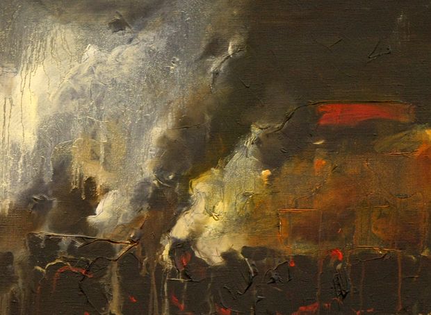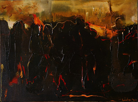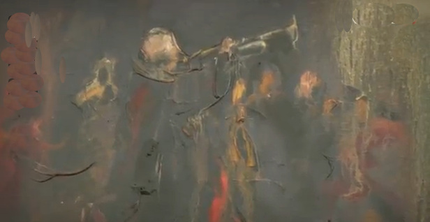 Преображение. 1518 - 1520. ⌠Нижняя часть картины, согласно иконописной традиции, представляет эпизод, который непосредственно следовал за сошествием Христа с горы: Рафаэль изображает чудо исцеления больного эпилепсией мальчика. Испуг, смятение, удивление, суета в этой части картины <┘> Многообразие поз и жестов выражает различные чувства персонажей и подчеркивает индивидуальность каждого из них. Экспрессивность фигур подчеркивается светом, падающим слева. Возможно это прием, ранее не встречающийся в его живописи, Рафаэль изобрел во время работы над театральными декорациями■ ( http://www.filoli.ru/artists/038-raphael/preobrazhenie.php).Я не думаю, что внизу изображено чудо. Нет. Мальчик имеет вполне невменяемый вид. Да и Христос-то ещё не спустился. Но Он вот-вот спустится (это все зрители знают). Он чудо сделает (это тоже все зрители знают). Да и персонажи там, внизу (кроме мальчика) все имеют человеческий облик. Есть на что надеяться наивному реалисту зрителю, ставшему таким от вживания в наивного реалиста Рафаэля, не лишившего прекрасного человеческого облика обличаемых. Как было на что надеяться и Высоцкому √ на память, на прошлое, на массовую инициативу и самопожертвование в только что закончившейся Отечественной войне. Но этот ералаш толпы и бури светового облака и есть образ негативизма художника к современникам, поглощённым низким. Вещизмом это было во времена Высоцкого. И надо было Высоцкому быть большим идеалистом, что в эпоху Потребления при наличии предательства властью самоуправления и разумного потребления √ можно народ своими песнями вернуть к началам, которые и двинули Октябрьскую революцию. Но Высоцкого ничто не останавливало. Как Рафаэля. Рафаэль даже, вон, открытие (боковой, театральный, драматический свет) сделал, направленное на разграничение земного и небесного. Нет никакого отсвета внизу от голубого сияния вверху. Драматизм внизу √ это драматизм змеюшника. Отвергаемого напрочь. И через 7 лет после даты создания картины Рафаэлем Рим был разорён толпами, возмущёнными роскошью и безнравственностью церковников. А через 11 лет после смерти Высоцкого в Москве власть взяли люди противоположного толка, на комфорт сориентированные. То же (просто оттяжка на 23 года) √ и с майданом в Киеве в этом году (⌠В Европу!■). Так у меня сильная тяга возразить тем, кто называет позднего Рафаэля маньеристом. Маньеристом он, может, стал бы, когда смотрел бы, как разоряют Рим в 1527-м (но он умер, не дожил). Маньерист √ это вера в сверхбудущее, благое для всех. Эта мысль меня настигла, когда я слушал живописца майдана, так сказать: ⌠Вайнберг: Немножечко предыстории надо. У меня была уже ⌠Стена■. Это была ⌠Стена■, сделанная по иллюстрациям Ганса Гольбейна Младшего к ⌠Ветхому Завету■. Отсюда у меня и форматы такие были, и всё остальное. Когда я начал думать о том, как изобразить увиденное на майдане, я не сразу вспомнил о той ⌠Стене■, я думал о каких-то больших работах. Что-то наподобие ⌠Битв при Сан Романо■ [огромные, 3-хметровые полотна]■ Паоло Учело. Может, я к этому ещё вернусь. И тут меня вдруг, так сказать, осенило┘ Фрагментарность майдана, его постоянная бегающая амплитуда чувств от печали до надежды■ (http://ukrlife.tv/video--duh-i-litera-vistavka-matviya-vaysberga-stina-prisvyachena-maydanu--1495). Тут главное слово √ Гольбейн. Так случилось, что этот день я начал с подозрения, что Гольбейн √ маньерис