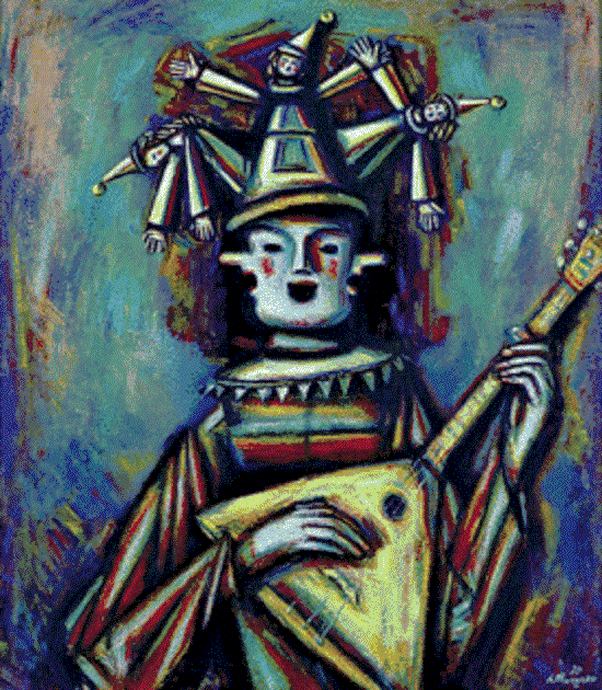 каким-то карандашным рисунком этого Тышлера очень дорожила Лиза (кстати, невероятно, чтоб Вика карандашный рисунок стала от пыли протирать мокрой тряпкой.) Впрочем, тот Лизе от дедушки достался, так что, строго говоря, неизвестно, понимала ли сама Лиза в этом рисунке что-то или нет. А вот эта репродукция Петрушки, что ли, взята со страницы http://www.artcontext.info/pictures-of-great-artists/55-2010-12-14-08-01-06/1002-tyshler.html Вы её прочтите. √ Ничего в Тышлере не разберётесь. И зачем Тышлер намалевал (иное слово применять не хочется) этого клоуна, вы не поймёте. Лично я могу предположить глубину. А именно, дескать, в аристократическом отвращении к низким массам и их вкусу и в пику власти, на материальное ориентирующейся и массы так ориентирующей, художник издевается над этим вкусом масс. Но как Тышлер, восьмой сын краснодеревщика из провинциального города, пусть и учившийся в Киеве, смог при советской-то власти приобрести аристократическое мировоззрение? √ Этого я не понимаю. Разве что обезьянничал, глядя на настоящих ницшеанцев, которых полно было в художественном мире ХХ века. √ Это б я понял. Или вот.