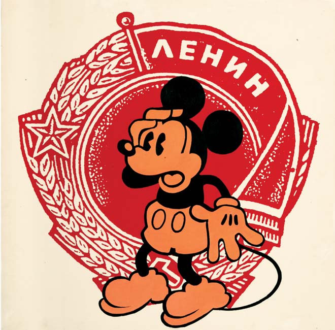 "Для Косолапова роль привнесенного элемента (социалистического происхождения) состоит в том, чтобы разрушить обстановку, в которую он помещен (обстановка, состоящая из заимствованных культурных стереотипов). Ленин и Микки Маус становятся взаимозаменяемыми, как продукты массовой культуры. Создавая этот радикальный коллаж, художник подразумевает, что, несмотря на конфликтные отношения между двумя системами, отличительными признаками которых являются используемые им символы, их основная цель – убедить население в подлинности и искренности их товаров – несомненно, совпадает” (http://www.gif.ru/people/kosolapov).