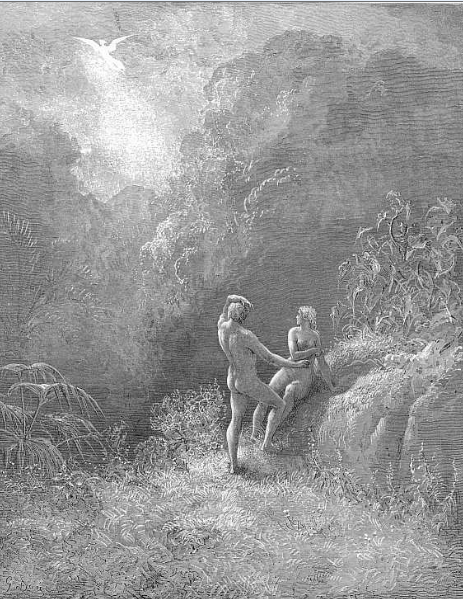 Гюстав Доре. Я не понимаю, почему Гюстав Доре, иллюстрируя “Потерянный рай” Мильтона, не одел Адама и Еву, как то сделал Сын Божий перед отлётом на небо к Отцу по Мильтону?