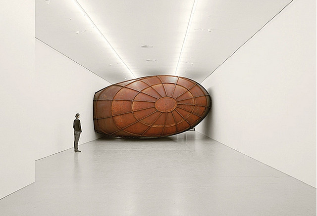 Капур. Переворачивая мир вверх дном. 2010. Впрочем, всё, что зеркальное, есть некое самоповторение. Оно как может быть оправдано? – Если предположить, что автору – из-за подсознательности его идеала (или отсутствия идеала, как при постмодернизме) – не вполне ясно, что им двигает, то и уже сделанное раз выражение этого неуловимого кажется недовыраженным. Вот и тянет на повторения… Высоцкого по той же причине тянуло и тянуло на выражение запредельного напряжения и победы. Что можно противопоставить такому толкованию? Не Высоцкого (у того масса песен запросто интерпретируется как выражение новой левизны). Что можно противопоставить постмодернистскому (с конкретикой) толкованию Капура? – Многие и многие его работы, которые – хоть убей – не поддаются рациональному объяснению. Только слабостью меня как интерпретатора такую непостижимость большинства, можно сказать, его вещей не объяснишь. Так что не исключено, что и то, что я сумел объяснить, есть ошибка. 3 октября 2015 г.