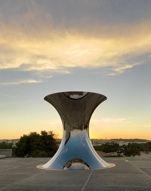 Капур. Память для Берлина и Нью-Йорка в лице фонда Гугенхейма. 2008. Там, за этой глыбой, как раз и лежит первоисточник внутреннего глубокого родства Запада с нацизмом ХХ века (да простится мне это смелое озарение). Так издавна пошло, - наверно, с расслоением людей, - что произведение искусства остаётся непонятным для большинства. Потому, в частности, Запад – в условиях информационной войны с Россией в первую очередь – разрешает Капуру ставить у себя критикующие его создания. Как апологеты капитализма подсознательно, - наверно, вполне в духе выше процитированного Плеханова, - защищают свой строй от Капура? – Они, искусствоведы, ни за что не интерпретируют, что хотел сказать автор: "оставляя огромное пространство для воображения и фантазий” (http://design-union.ru/portalnew/noosphera/names/1871-anish-kapoor). Сам Капур – из-за оскорбительности для окружающих его замыслов и исполнений – тоже темнит напропалую: "Я размышляю о мифических чудесах Света — Висячих Садах Семирамиды и Вавилонской башне. Это как если бы коллективная воля создала нечто, что имеет резонанс на индивидуальном уровне и таким образом становится мифическим. Я уверен, что это нужно взять в качестве модели для образа мышления. Искусство способно на это, и я буду стараться двигаться в этом направлении насколько смогу. Я хочу оккупировать эту территорию — территорию идей и образа мышления, которая превращается в контекст, генерирующий объекты” (Там же). Правда, и требовать слов от выразителя подсознательного в принципе нечего. Вообще же, интерпретация теперь (любого произведения) естественно оказывается антикапиталистически направленной. Впрочем, и антирелигиозной (обман-де – религия). С превалированием Запада на планете с его показной политкорректностью капиталистический мир можно называть иудео-христианским. И в некотором смысле столицей этого мира является Иерусалим. Тем интереснее Капуру поставить там своё “фэ” этому миру.