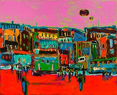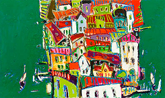 Матисс. Музыка. 1910. Но фовисты, в своём эгоистическом неприятии хоть и тоже эгоистичного капитализма, рванули вон из техногенной цивилизации – в традиционную, в Африку, Океанию. Les fauves – дикие. А Деяк – наоборот, из традиционной, украинской, с неизжитым коллективизмом – в цивилизованные, так называемые, страны. В самую тесноту человеческую. И – с радостью. Это чувствуется по какой-то дробности изображения. И если он бежал от коллектива, то в коллектив же и прибежал? – Вопрос… Или это очень просто объяснить, если различить коллектив коллективистов и коллектив индивидуалистов. Объяснить так. Что Кудрин (имея в виду Россию) говорит, что в Европе гораздо более социальные государства, так это пропаганда. Там просто богаче страны. Вот и кажется, что там более социальные государства. И Деяк не обманулся. И счастлив там. Та же всё-таки детализация об этом говорит (смотрите на блики в море). Ну и это общее сияние… (У него, пишут, аж краски собственного изготовления, чтоб сияли.) Жаль только, что такую массу в принципе не отличающихся картин он написал. Как пулемёт. Серийность какая-то неприятная при взгляде со стороны, но не замечаемая изнутри себя глядя. Как средний класс в наивности своей думает, что он не отличается от высшего. Или я политизировано смотрю?