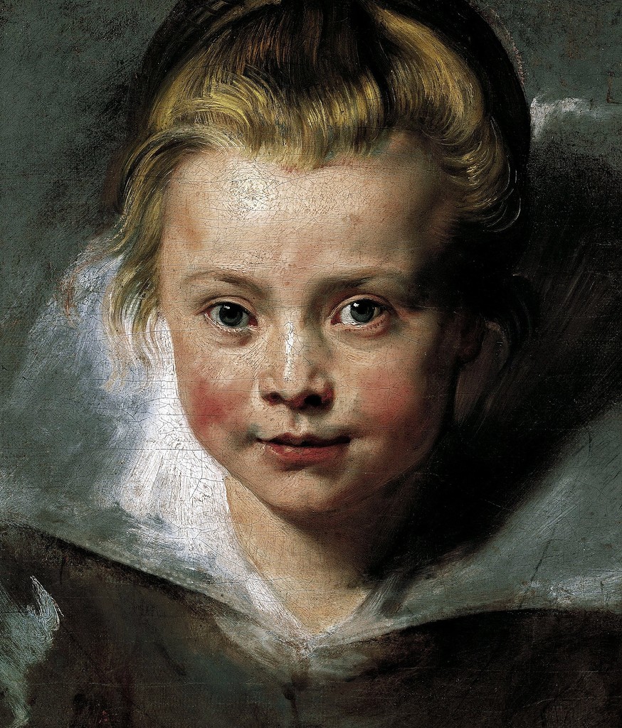 Рубенс. Портрет Клары Серены Рубенс. 1616. Нет! Есть и тут истаивание – во мрак. И он – аналог христианского того света и духовного. А этюдная грубость мазков белилами на бликах – аналог материального. Зная, что девочка через семь лет умерла, так и хочется сказать, что счастье – в самой зыбкости детского существования (думая, что детская смертность была велика в Средневековье). Но. Тогда это станет произведением экзистенциалиста (ведь стили повторяются в веках; и можно мыслить стиль ХХ века существующим и 300 лет до ХХ-го). А экзистенциализм – гораздо пессимистичнее протрезвевшего от залётов барокко века XVII. Не хочется тому стилю отозвать оптимиста Рубенса. Но в чём может быть грешен ребёнок 5-ти лет? – А хоть в детском деспотизме… Вы посмотрите, какая неангельская прямота во взоре этой девочки. Под стать грубым мазкам белил. 25 февраля 2017 г.