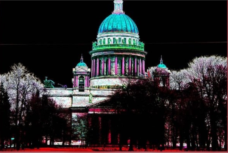 Иные с придыханием говорят о Фаворском свете в связи с этими фотографиями. Но, глядя на этот драматизм цвета у Гребенщикова, вспоминается о той борьбе вокруг этого света в 14 столетии в Византии. Одни, идеалисты, считали, что да, он был, но был создан для просвещения только апостолов и бесследно исчез, а другие, материалисты, считали, что его можно увидеть и сейчас – при молитве. И из-за такого церковного раскола произошла большая беда. Материалисты привлекли османов на помощь. И с того началось завоевание османами Балкан. И Гребенщиков представляется злобно стоящими НАД земными спорами, над суетой мелких людишек. Исаакий без креста и с чёрным небом в этом случае представляется знаменательным.