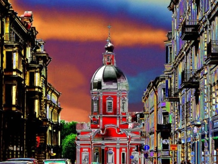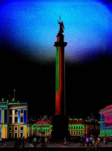 А чернота этого фона-неба над ростральной колонной… Не зря зелень и фиолетовость. Противоположности на цветовом круге.