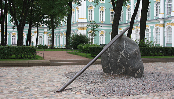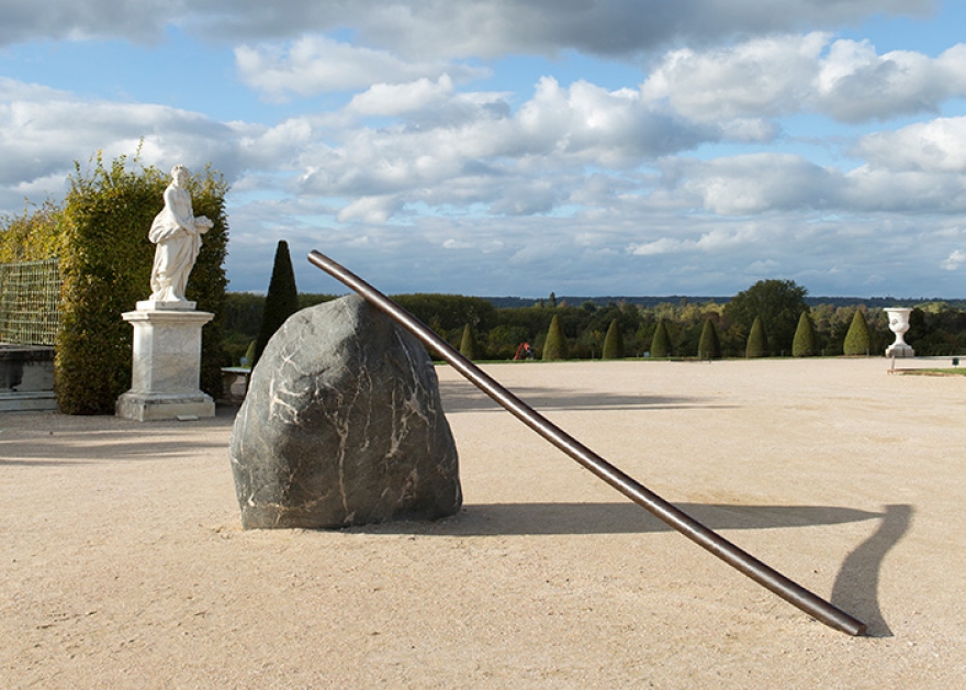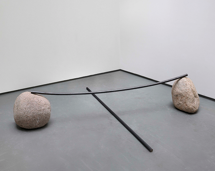 Ли Уфан. Трость титана. 2014. Из серии “Отношение”. Какой намёк автора к этому подходит? "...связать то, что еще не создано, с тем, что уже есть” (http://www.interviewrussia.ru/art/li-ufan-pered-kamnem-cheloveku-ostaetsya-tolko-pokoritsya). “Камням никто не нужен, чтобы существовать долгое время. Когда человек предстает перед камнем, ему остается только покорно смотреть на него” (http://www.interviewrussia.ru/art/li-ufan-pered-kamnem-cheloveku-ostaetsya-tolko-pokoritsya?page=2).