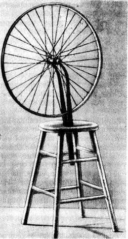 Дюшан. Велосипедное колесо. 1913—1914. (например, велосипедное колесо – в 1914 году). Столкновение одного и другого (точнее, страстных переживаний одного и другого) даёт подготовленному зрителю третье переживание, нецитируемое (в чём и состоит упоминавшееся открытие Выготского). И если в акте последействия искусства (не непосредственно восприятия, а именно последействия) это нецитируемое озарит осознать, то оно и будет той ненавистью, которая двигала Дюшаном в самый первый раз. А можно допустить, что и ещё несколько раз после первого. Ладно. Пусть всё, в том числе и безвестность, имеет свою инерцию. И пусть только в 1917-м Дюшан, наконец, прославился, своим “Фонтаном”, подписанным унитазом, купленным в магазине. Но нельзя такого допускать долго. С какого-то раза надо жестоко уличить Дюшана в самоповторении. И от звания художника отлучить. Что дельцам от искусства не выгодно. А потерявший сопротивляемость Дюшан терпит. Он через несколько десятков лет выставил опять унитаз, только уже не новенький, а со следами длительного пользования. С надписью: "Для отправления нужд духовных и эстетических". Блюйте, мол, сюда немедленно от отвращения. И – опять слава! Но нам-то зачем такое терпеть? Если Тони Крэгг спустя десятки лет повторяет Дюшана, зачем нам делать вид, что это ахти что?