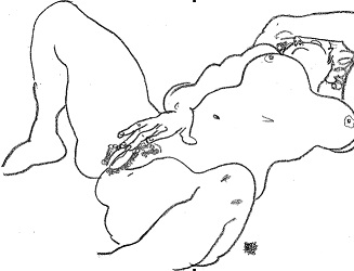 Климт. Женщина в кресле. Ок. 1913 г. Шиле. Лежащая обнаженная . 1918 г. Так на грани веков стили, идейно противоположные первым двум. И тоже нельзя уподоблять. И всё это – абракатабра для незнающих ни стилей, ни выражаемых ими идей, ни даже Возрождения, о котором в школе учат только похвально (да и слово-то какое). Иное слово, годящееся для Возрождения, Вседозволенность. Только что не хочется повторяться и описывать, что только себе ни позволяли титаны той эпохи. Достаточно будет сказать, что против разврата католической церкви было восстание под именем Реформация. И сто лет шла религиозная война в Западной Европе. В школе по моральным соображениям об этом умалчивают. А потом, взрослыми, люди уже не учатся. Из сказанного следует, что похоже, что Кандель прав, всё сваливая в кучу одинаковости. Так, чтоб его опровергнуть, мне надо читателя погрузить в совсем сложные соображения и аналогии. И иному я предложу просто поверить мне. Во-первых, тому поверить, что настоящий художник движим вдохновением. Во-вторых, что в основе вдохновения лежит идеал. В третьих, что он подсознателен и потому требует от художника самовыражения (иначе того разорвёт, красно говоря). Этому поверить уже труднее. Знаю. Но поверьте. ЧТО-ТО его бередит (сознанию ж не дано), и он впадает в изменённое психическое состояние. Как убогий (от слов: у Бога). Ничто осознаваемое не годится (идеал-то – в подсознании). И… он рисует вообще противоречия. Только геометрическая, так сказать, сумма противочувствий (соответствующих “текстовым” противоречиям) словесно невыразимо соответствуют подсознательному идеалу. И художник успокаивается, чувствуя, что удалось выразить ЧТО-ТО.