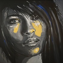 Вот эта – какую? – То ли измучена сексом с целым взводом, то ли, наоборот, чёрной полосой мучительно долгого отсутствия у неё мужчин. И чёрный цвет соответствует. А если художник в жизни половой аскет (вольно или невольно), то он использует живопись как компенсатор. Если губы призваны выражать чувственность, то ясно, что именно её Бабский и держит в центре внимания. Губы его женщин всегда толсты (или опухли от засосов, или это губы негритянок), а ещё обязательно обведены линией, светлой или тёмной. Правда, что делать мне, интерпретатору, если нарисованы, например, сразу две и явно стоящие и одетые женщины?