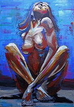 Они что: ждут своей очереди в чём-то, имеющем отношение к сексу? “Скромно” потупились… – Почему секс? – Из-за той же выделенности губ. Причём у всех женщин, по-моему, есть индивидуальность в чертах лица. Они принципиально разного облика. Модильяни своих обнажённых натурщиц, которые ему отдавались перед или после сеанса позирования, втискивал в некий канон. И можно думать, что это было для выражения идеала демонизма, попрания высшим существом низшей особи. А у Бабского все – разные. То есть – никакого демонизма? Общая всем черта всё же есть – женская привлекательность. Впрочем, и "на выражении эмоций” Бабский не всегда настаивает.