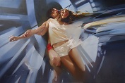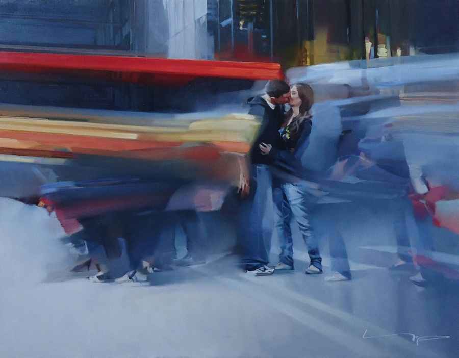 Чернигин. Он и она. Вспомнил потому, что и у Корреджо, и у Чернигина – поцелуй, который мне когда-то в молодости приснился (неперсонифицированный). Он был с таким же истаиванием ощущений, чем дальше от губ. И, естественно, я никакого Корреджо тогда не знал, а Чернигина тогда и на свете не было. Ну и Чернигин не стал так тонко передавать движение в пространстве (изменением интенсивности света), как Корреджо, а… грубо: следами изображения движения, какие возникают при браке кино- или телепоказа. – Женщина бежала к мужчине справа, Наверно, с криком. А он, услышав и узнав, остановился, повернулся и только и успел, что подставить губы для поцелуя, руки не успев даже поднять. И, конечно же, для них всё окружающее пропало из внимания. – Проиллюстрирован такой вот психологический (или даже физиологический) нюанс силы чувств. Что у Корреджо было тоже, но имело очень мало значения. По сравнению с той глубиной подсознательного идеала – Гармонии высокого и низкого. Качества идеала, тем более подсознательного, я что-то у Чернигина не чую. Это, повторяю, иллюстрация физиологической особенности сильного переживания. Когда он рисовал это, лично ему эффект был УЖЕ известен. То ли по собственному опыту, то ли по чьему-то рассказу, или он увидел картину Корреджо. – Эффект неожиданности передан. Но. Мелко. Для усиления в общем-то знаемого любовного переживания годится. То есть эстетическую ценность работа имеет. Но художественную – нет. Она внеисторичная и вневременная. Переживание любви и всё. Абстрактно. То же, собственно, и тут.