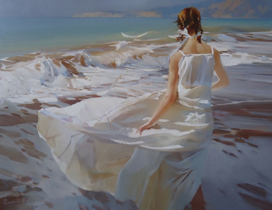Чернигин. Атлантика. Смешение волн и чувств, банальное из-за буквального смешения складок платья с волнами. Этот мотив смешения как показатель усиления чувств у него сплошь и рядом. Какое-то нудное самоповторение.