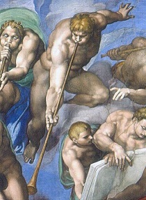Филиппо Беллини. Портрет папы Сикста V. Микеланджело. Страшный суд. Фрагмент. (Перчатки кровавы от казней за прегрешения. Тела голы и искорёжены от отвращения к плотскому.) Среди паствы, которой надоела война за их не касающиеся эмпиреи, нашлись и художники, которым соответственно надоел маньеризм. С его искусственностью во всём. В том числе и с освещением. И они как бы бросили клич: “Даёшь реализм!” Хоть бы в одном освещении, если нельзя в тематике…