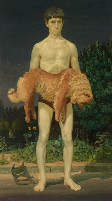 Жилинский. Человек с убитой собакой. 1976. 8 февраля 2019 г. * - А почему с вами как с тем поручиком, у которого вся рота идёт не в ногу?- Я не знаю, строго говоря. Я пытаюсь такой разлад сбалансировать, ставя себя в невыгодное положение. Если я из него как-то выбираюсь раз за разом, то должно ж это иметь причину? Например, мою честность и правоту. Я ведь никому ничем не обязан. А других положение обязывает. У меня же нет положения. А вот Анна Дьяконицына – специалист. Из тех, которым претит писать просто. "Зрителей тогда поразило многое: активная роль цвета, динамика композиции, монументальность пластического решения, переданное через силуэт ощущение массы, объема. Но главное - стало очевидно, что в отечественном искусстве послевоенного периода появился художник, способный переложить высокий стиль европейского Ренессанса и древнерусской иконописи на язык современности” ( https://www.tg-m.ru/articles/2-2017-55/dmitrii-zhilinskii-blizhnii-krug).Мне из такой фразы ясна только монументальность. Я её понимаю, как преуменьшение деталей. Слова Манина насчёт "плоскостного письма, напоминающего заливку, едва оттененную объемностью” не ссорят меня с её понятием "монументальность”. И всё это сходится с моими “заглавными буквами” для Низких Материй. Но как понимать того же Манина: "Многие произведения Жилинского – “Два художника” (1971)… отличаются удивительной точностью деталей”?