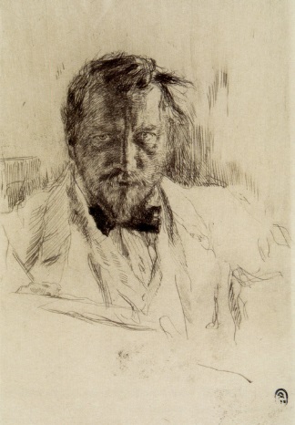 Серов. Автопортрет. Около 1898. Эта темнота лица, распатланные волосы, затравленный взгляд, складки над переносицей – чем не доказательство финала статьи Эфроса? "Серов, одновременно, сдержал все обещания юности – и не выполнил ни одного. Эксперименты его мастерства не нуждаются ни в каком снисхождении; они не спускаются с уровня самой придирчивой требовательности. Но существо его искусства вызывает сопротивление опустошенному художнику и сочувствие мучающемуся человеку. Он родился сыном своего времени – и вырос его пасынком. Он ни во что не верил, но кипел в пустом действии. Как лермонтовский эпигон, он случайно любил и ненавидел. Он был публицистом без цели, экспериментатором – от случая, разносторонним – от безразличия, мастером – от повторений. Он был первым декадентом русского искусства. – Нет, надо сказать иначе: он был первой жертвой русского декаданса, самой большой и самой неправильной. Если бы истории можно было предъявлять счет за неправильные потери, я думаю, что наше поколение должно было бы начать его Серовым” (Там же). Насколько красноречиво, настолько и не верно. Но Эфрос не этим карандашным автопортретом козыряет, а нюансами других картин. И самый провальный нюанс – в начале его обращения к Серову, к тому, как тот тайно поместил себя с этой своей декадентской складкой на лбу на портрете Гиршман: "И когда за парадной дамой парадного будуара мы внезапно встречаем, словно бы случайно отраженную, складку серовского лба, мы понимаем, что этим тончайшим приемом контраста Серов тому из нас, кто будет достаточно внимателен, чтобы за беззаботной моделью разглядеть его, художника, приоткрывает тягость своего творчества” (Там же). Это вот о чём. Об отражении в круглом зеркальце, что левее от руки мадам Гиршман, опёршейся мякотью кончика большого пальца и костяшками пальцев остальных правой руки о туалетный столик.