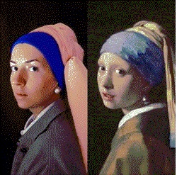 Я, по его мнению, должен был обрадоваться: народ взялся за творчество. (Я ему рассказывал, что при коммунизме работать будут роботы, а люди станут жить в неприкладном искусстве. Потому в неприкладном, что оно наиболее конкурентоспособно среди других занятий: развлечения, спорта, прикладного искусства, науки и т.д. Оно единственное занимается непосредственным и непринуждённым испытанием сокровенного мироотношения человека и при создании произведения, и при восприятии его. А испытание – это всё-таки не сама жизнь. Оно – условность. Потому не так опасно для жизни, как сама жизнь. Например, скалолазание. Плюс неприкладное искусство исключительно по утончённости переживания: это переживание ЧЕГО-ТО, что необходимо выразить творцу из-за вдохновения и это переживание ЧЕГО-ТО, что случилось с восприемниками от общения с произведением. Оба переживания подсознательны. И это упоение: одному – суметь выразить, другим – суметь почуять, а повезёт – впоследствии и понять.) Разозлившему, наверно, никогда не случалось понять. Так он думает, что ЧЕГО-ТО и не существует на свете. Поэтому он пропустил мимо внимания такую тонкость (выражающуюся у меня частицей “не” в слове “неприкладное”). И вот считает ценным обезьянничанье перед фотообъективом на предмет уподобления себя и изображения на знаменитом произведении искусства. Тут – картины “Девушка с жемчужной серёжкой” (1665) Вермеера.