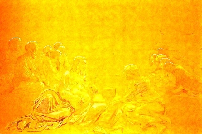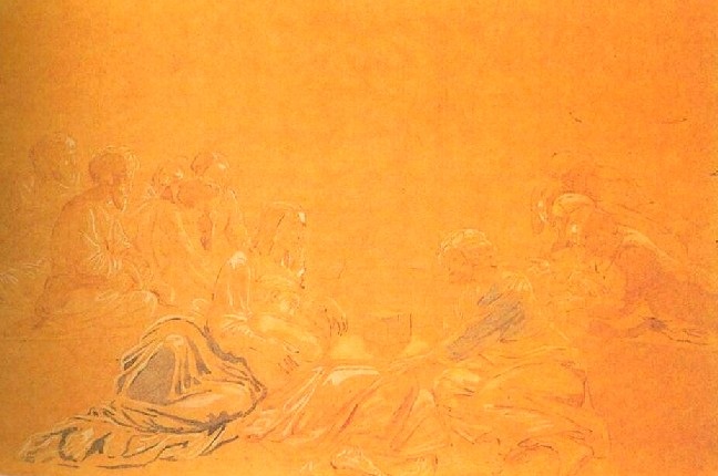 Иванов. Тайная вечеря. Чтоб доказать, что тут все 12 апостолов и Иисус, я преобразовал эту картинку, увеличив контрастность и обведя тонкими белыми дугами макушки (всмотритесь – увидите).