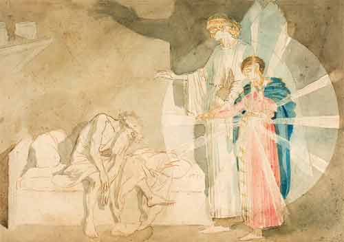 Иванов. Ангел отваливает камень от двери гроба. Даже более чем как мёртвые. Их вообще трудно увидеть. Если б не согнутая в колене нога одного воина, остальные повергнутые казались бы почвой. Штраус: "Если мы еще ближе всмотримся в отношение цитат Юстина к отдельным нашим евангелиям (за исключением четвертого), то увидим, что они более всего согласуются с Евангелием от Матфея… Но иногда замечается также сходство с Лукой… При этом он пытается согласовать обоих евангелистов по таким пунктам, по которым они между собой расходятся. Например, со слов Луки он сообщает, что ангел Гавриил предрек Марии ее беременность, и затем со слов Матфея, ничего не сообщающего об этом предсказании, повествует о том, как Иосиф усомнился в своей обрученной невесте и только в сновидении был наставлен на путь истины”. Что у Иванова об этом?