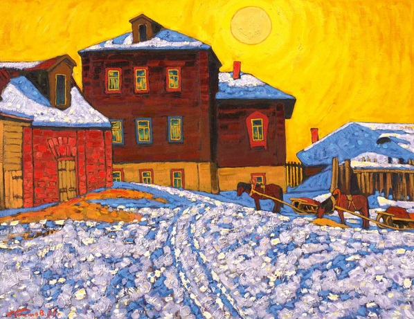 Бритов. Март. Гости приехали. 1996. Он же живописец. Почему духоподъёмность красками не прокричать. Но когда!?. Когда страна так называеморго коммуниста Зюганова в президенты чуть не выбрала от отчаяния из-за радикала Ельцина… Но "Опыт истории говорит, что гитлеры приходят и уходят, а народ германский, а государство германское остается” (Сталин. https://petroleks.ru/stalin/15-64.php). То же и с Ельциным по Бритову. – Гимн санно-лошадной России как символу традиционализма, то и дело выступающему на передний фронт Истории. И тут Украину жалко. Не чует она, порываясь теперь в принципе к Комфорту-Западу (по пути провал в нищету – не в счёт), что это – к смерти человечества порываться. Смерти из-за перепроизводства и перепотребления. 16 апреля 2019 г.