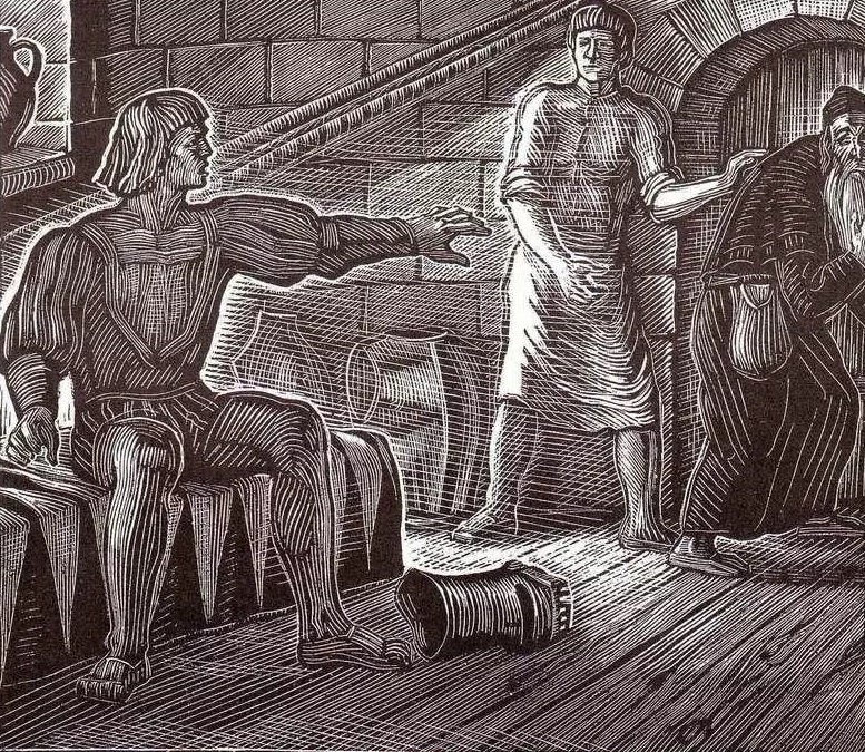 Фаворский. Одна из иллюстраций к “Скупому рыцарю”. 1959-1961. В чём злодейство рыцаря – не видно сразу. Если он и злодей, он художником прощён – он на стороне света, льющегося из окна. Он красавец. Он даже вот сейчас совершает моральный подвиг, выгоняя ростовщика за совершенно ужасное предложение того отравить отца ради вступления в наследство. Точнее, за предложение того денег дать рыцарю, чтоб тот только не повесил его (о чём тот уже распорядился слуге) за такое жуткое предложение (а угрожать смертью он намеревался самого начала и до того злостного предложения, а просто так – ему б ничего не было за убийство еврея). Честь! Она тут у Фаворского во всей своей ценности? – Нет. Рыцарь дан всё-таки против света. Он в тени. Но разве "негодованием” движим Фаворский в этой гравюре? Поперёк свету и два копья, которыми этот рыцарь, несомненно, убил уже не одного из других рыцарей – на турнирах. Он – злодей. (И таковым себя покажет ещё в будущем, как мы знаем.) А противостоит его злодейству… ещё и красота выполнения произведения. Эта явленность исходного материала – резьбы по дереву штрихами. “Красота важнее нравственности!” - как бы кричит гравюра. И тут Фаворский в контрах с Пушкиным, с того пронзительным лаконизмом письма, выразившемся даже и в том, что трагедии названы маленькими. У Пушкина в 1830 году лаконизм – от остаточного родства с декабризмом, готовым к смерти в борьбе за лучшее будущее. Несколькими строками перед процитированным Фаворский, кратко описывая все четыре трагедии, не удержался. И написал о последней тот акцент, какого сам Пушкин ей не дал (а применил лишь как одно из противоречий): "…в “Пире во время чумы” трагедийное положение доходит до крайней степени напряжения и провозглашает устами Председателя гимн: “Все, все, что гибелью грозит, для сердца смертного таит неизъяснимы наслажденья — бессмертья, может быть, залог!”” (Там же. С. 151). А что такое бессмертье у изверившихся в Боге? – Это подсознательный идеал ницшеанства: принципиально недостижимое метафизическое иномирие, хорошее лишь тем, что творцы могут ему найти образ, чем и не преминул воспользоваться Председатель (и что для Пушкина лишь одна из красок). А Фаворский не сдержался и раскрыл себя. Если он честный человек и восстанет из мёртвых, он, как и честный Высоцкий, не дадут мне в морду за наглую, мол, натяжку на них моих мыслей. 29 июня 2020 г.