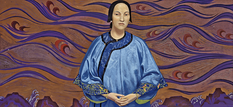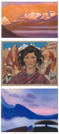 Рерих С. Портрет Кэтрин Кэмпбелл. Что я попал, говорит тот факт, что китайского вида глаза этой Кэтрин Святослав Рерих смог только… Лучше я процитирую текст при этой репродукции: "Кэтрин Кэмпбелл часто позировала Святославу Рериху для портретов. Во время посещения госпожой Кэмпбелл Москвы в начале 1980-х годов, сотрудник музея Востока Ольга Румянцева спросила, как так получилось, что на одном из полотен изображена вроде бы сама Кэтрин Кэмпбелл, но разрез глаз какой-то восточный? Кэтрин Кэмпбелл ответила просто и честно: “Мне пришлось держать глаза”. Нарядив госпожу Кэмпбелл в китайские одежды, Рерих понял, что-то здесь не то, модель не восточная. Так Кэтрин Кэмпбелл для соответствия образа пришлось “держать глаза” все время позирования” (Елена Новикова. http://eclectic-magazine.ru/nikolaj-rerix-neizvestnye-fakty/?utm_source=feedburner&utm_medium=feed&utm_campaign=Feed%3A+eclectic-magazine%2FWFqI+%28%D0%96%D1%83%D1%80%D0%BD%D0%B0%D0%BB+Eclectic%29). Когда я искал в интернете дату создания этого портрета, мне среди картинок (обоих Рерихов) попались рядом две, из которых я, нахватавшись у Фаворского понятий "пошлость красивенькая, яркая”, назначил верхнему пейзажу быть – Николая Рериха, а нижнему – Святослава Рериха.