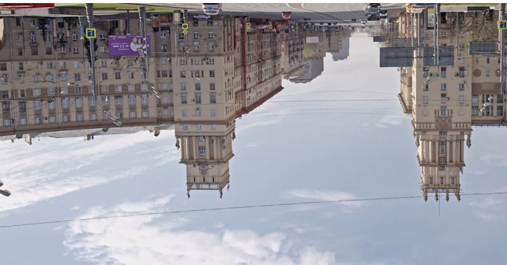 Искажённые звуки и перевёрнутость картинки вызывает легко достижимое восприемником негативное переживание. Способом заражения. Простейший приём, применяемый прикладным искусством (это то, что о знаемом; в отличие от неприкладного, о незнаемом, движимом подсознательным идеалом через муки слова – если это литература, через муки краски и черты – если это изобразительное искусство {потому что нет в сознании того, чем мучим и вдохновлён}).