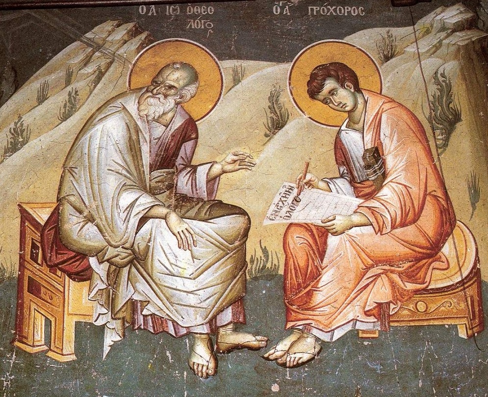 Мануил Панселин. Иоанн Богослов на острове Патмос. XIII-XIV вв. Фреска. соединения поверхностей профиля и фаса, спинной и фронтальной плоскостей… линии параллельные и не лежащие в плоскости иконы или ей параллельной, которые перспективно должны были бы быть изображены сходящимися к линии горизонта, на иконе бывают изображены, напротив, расходящимися… впечатление сознательности сказанных нарушений перспективы чрезвычайно усиливается от подчеркнутости обсуждаемых особенных ракурсов, — применением к ним особенных же расцветок или, как говорят иконописцы, раскрышек: особенности рисунка тут не только не проскальзывают мимо сознания через применение в соответственных местах каких-нибудь нейтральных красок или смягченные общим цветовым эффектом, но, напротив того, выступают как бы с вызовом, почти крича на общем красочном фоне. Так, например, дополнительные плоскости зданий-палат не только не прячутся в тени, но, напротив, бывают нередко окрашены в цвета яркие и притом совсем иные, нежели плоскости фасадов. Наиболее же настойчиво заявляет о себе в таких случаях тот предмет, который разнообразными приемами и без того наиболее выдвигается вперед и стремится быть живописным центром иконы — евангелие; обрез его, обычно расписываемый киноварью, является самым ярким местом иконы и тем чрезвычайно резко подчеркивает свои дополнительные плоскости… Эти приемы тем более сознательны, что они стоят, к тому же, в противоречии с обычною расцветкой предметов и, следовательно, не могут быть объясняемы натуралистическим подражанием тому, что обычно бывает. Евангелие не имело обычно киноварного обреза, а боковые стены здания не красились в цвета иные, чем фасад, так что в своеобразии их расцветки на иконах нельзя не видеть стремления подчеркнуть дополнительность этих плоскостей и неподчинение их ракурсам линейной перспективности, как таковые” (Там же). Когда народ привык, он те иконы считает лучшими, в которых искажений относительно действительности больше. Так же считают и эстеты – выдержан стиль. Служители церкви – тем паче. Когда в конце XIX века Васнецов, Врубель и другие стали писать реалистические иконы, некоторые церковнослужители выразили возмущение. И были по-своему правы. Заявления иконописцев, что их на писание вдохновляет молитва, долгий пост и т.п. – это обычное самовнушение. Но художник есть художник. Бывает, и на иного иконописца нисходило вдохновение, которое я предлагаю называть подсознательным идеалом. И тогда среди всех “неожиданностей” удаления от действительности (на самом деле они неожиданностями не казались, будучи применяемы сотни и сотни лет) он вдруг неожиданно для себя выдавал особую неожиданность (см. тут), потому что в действительности совершалось прямо-таки чудо, например, Батый на Новгород не пошёл. Земной характер провокатора вдохновения, как раз и показывает возможность для него не боговдохновения, а психологической причины, что стихийно и было усвоено по мере упадка религии, но до сознания так и не дошло пока. 24 июля 2020 г.