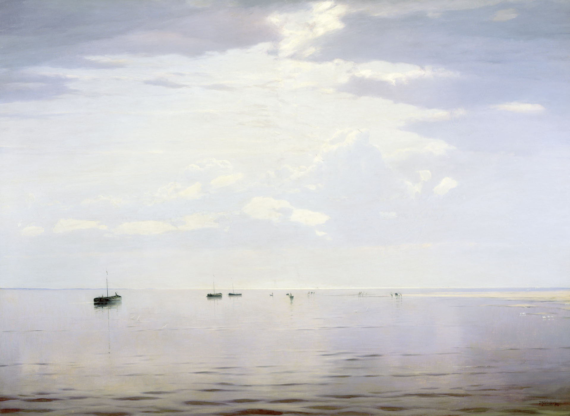 Дубовский. На Волге. 1892. 141.5 х 190.5 см. Я впервые натолкнулся на эту картину, хоть походил по музеям. В Третьяковской галерее она. Слов нет. Как-то без них понятно, почему иные иностранцы влюбляются в Россию. Выть от восторга хочется. 7 декабря 2022 г.