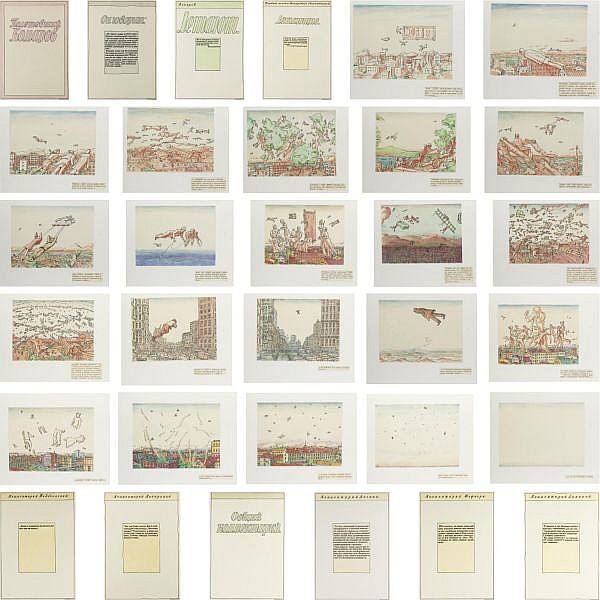 Для первого варианта приобщение к искусству происходит в форме перформанса. Надо исполнять ряд правил приобщения. Во-первых, это должны быть специально приглашённые люди. Все объекты оформлены в альбом. Альбомом распоряжается сам Кабаков. Перелистывает. Возможно, читает написанное. Даёт смотреть. Задаёт мерный темп всего процесса. – Чтоб довести вас до предзрыва от давления Правил на Этом свете, отдалённо перекликающихся с тоталитаризмом в СССР. А строго говоря – всюду.